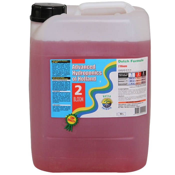Die Blütephase ist der produktive Teil des Lebens einer Pflanze. Dutch Formula BLOOM ist eine "Power-Diät" für die Blütenproduktion. BLOOM stellt sicher, dass Ihre Pflanzen das richtige Gleichgewicht an Nährstoffen erhalten, um ein optimales Wachstum von Blüten höchster Qualität zu fördern.