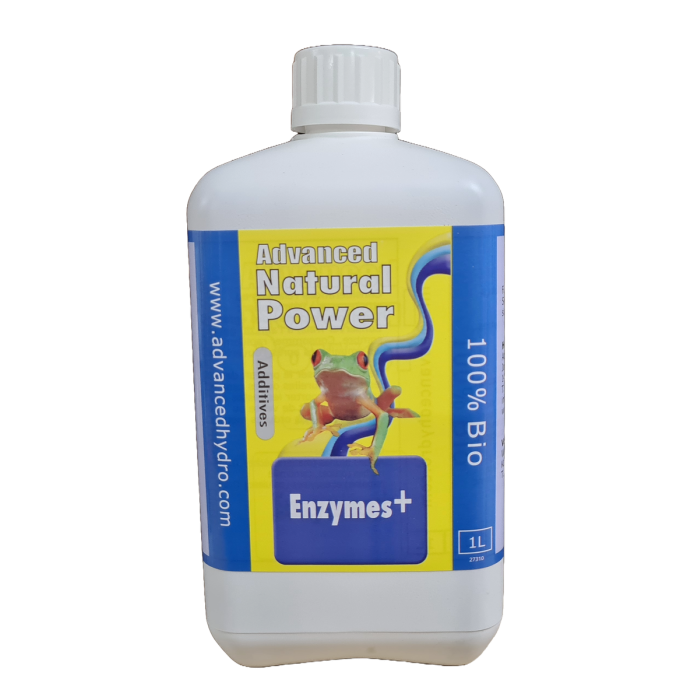 Eine natürliche "Enzyme"-Komponente der Natural Power-Linie aktiviert die begünstigten Mikroorganismen in den Kultursubstraten, was dazu beiträgt, sesshafte Salze zu entfernen und tote Wurzeln abzubauen. Dies verbessert die Fähigkeit der Pflanzen, die Nährstoffe aufzunehmen, und ermöglicht eine gesunde Entwicklung. Die "Enzyme" sind während des grössten Teils der Wachstumszeit der Bewässerung beizufügen und werden von der Mehrheit der erfolgreichen Züchter verwendet.
