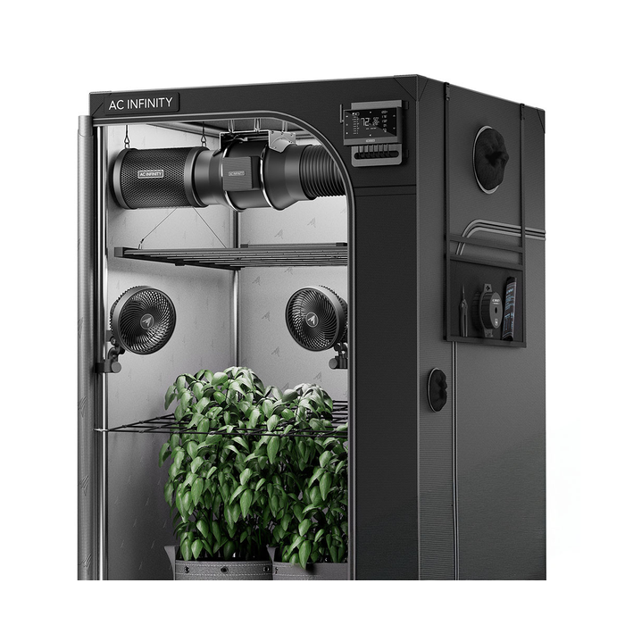 Das Herzstück des Systems ist der CONTROLLER 69 PRO (AI+). Er überwacht dein Grow-Zelt kontinuierlich und kommuniziert mit dem Ventilator, den Clip-Fans und der LED-Beleuchtung. Basierend auf dem Dampfdruckdefizit (VPD), der Temperatur und der Luftfeuchtigkeit passt er die Geräte automatisch an. Über die AC Infinity App hast du jederzeit Zugriff auf Echtzeit-Analysen, Anbauanleitungen und einen hilfreichen Chatbot.