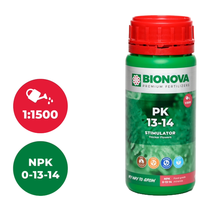 Bionovas PK 13-14 ist die perfekte Komposition als Hauptblühstimulator. Phosphor entwickelt ein gesundes und umfangreiches Wurzelsystem und eine üppige Blüte. Kalium fördert die Blühwirkung in der Pflanze. Die Kombination dieser beiden Komponenten in einer lebensmittelechten mineralischen Form ist der Superblüher der ursprünglichen Bionova. Die Pflanzen nehmen alle Mineralien in Lebensmittelqualität direkt auf, was Ihnen eine optimale Kontrolle über Ihre Pflanzen ermöglicht. Bionova ist der Erfinder der ursprünglichen Zusammensetzung: PK 13-14.