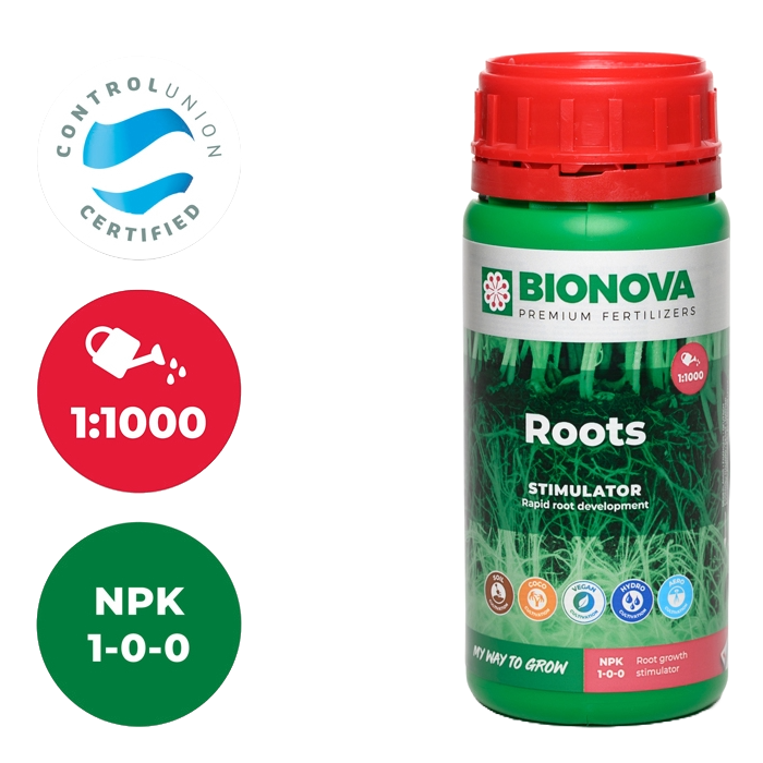 Bionova Roots kann bei verlangsamtem oder blockiertem Wachstum oder bei Problemen mit dem Wurzelsystem aufgrund von Insekten, Pilzen oder übermäßiger Bewässerung helfen oder einfach nur zur Verbesserung der Kultur durch die Verwendung von Bionova Roots 2,5 ml/Liter als Blattspritze und gute Drainage/Trocknung des Substrats.