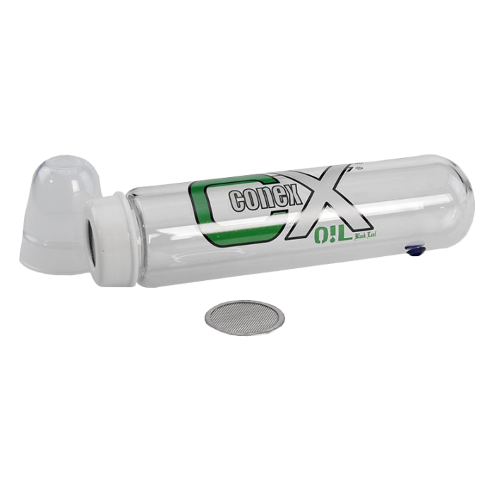 Der CONEX-Extraktor von Oil Black Leaf® ist aus bestem temperaturbeständigem Glas. Er extrahiert unter Verwendung von Butangas feinste Konzentrate wie Öl oder Wax. Anstelle von Butangas empfehlen wir die Verwendung von Dimethylether (z. B. DEXSO D.M.E.), da es weniger explosiv und daher weniger gefährlich als Butangas ist. Außerdem ist die Wirkung effizienter. Der CONEX hat praktischerweise ein wiederverwendbares Edelstahlsieb, so dass die Extraktion sofort starten kann: