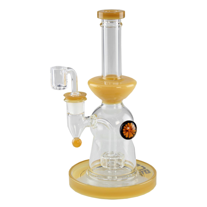 Die Glasbubbler eignet sich zum Genuss von Öl und Wax. Sie ist daher mit einem Banger ausgestattet, der aber jederzeit mit einem Kräuterkopf mit 14er Schliff ausgetauscht werden kann.