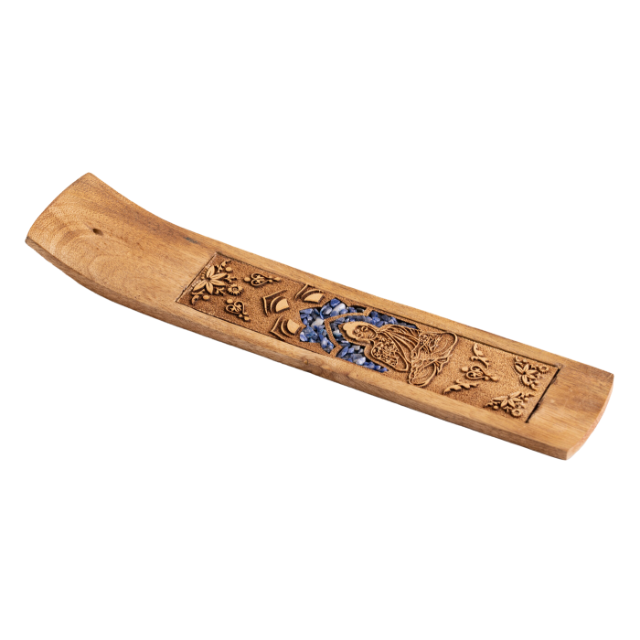 Buddha mit Sodalith, Holzhalter für Räucherstäbchen
