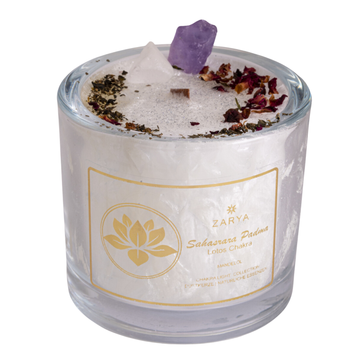 Diese hochwertigen Chakra Duftkerzen sind aus pflanzlichem Stearin (kbA) mit naturreinen ätherischen Ölen, echten Halbedelsteinen und Bio- Pflanzenmischungen hergestellt. Sie werden in liebevoller Handarbeit in Deutschland gefertigt. Für jedes Chakra werden speziell die ihm entsprechenden Öle, Halbedelsteine und Pflanzen verwendet, um es zu unterstützen und auszubalancieren.