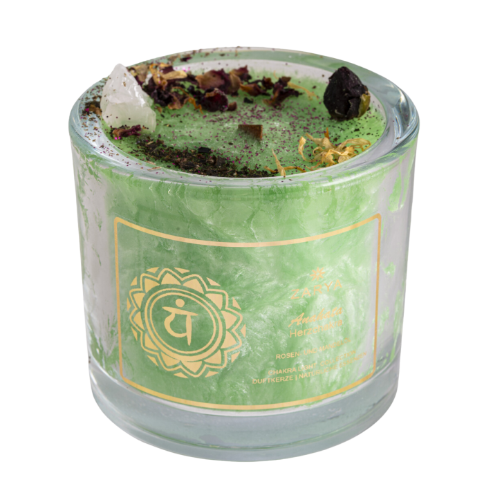 Diese hochwertigen Chakra Duftkerzen sind aus pflanzlichem Stearin (kbA) mit naturreinen ätherischen Ölen, echten Halbedelsteinen und Bio- Pflanzenmischungen hergestellt. Sie werden in liebevoller Handarbeit in Deutschland gefertigt. Für jedes Chakra werden speziell die ihm entsprechenden Öle, Halbedelsteine und Pflanzen verwendet, um es zu unterstützen und auszubalancieren.