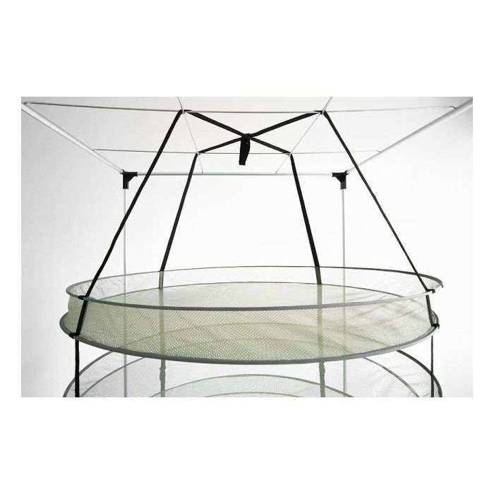 Drynet, aufgebaut 90 x 90 x 180 cm Im Zusammenhang mit der Drybox wurde das Trockennetz entwickelt, eine praktische und bequeme Art zu trocknen. Es besteht aus drei zusammensteckbaren Doppelböden mit einem Durchmesser von 90 cm. Maße verpackt: 35 x 35 x 9 cm Gesamtgewicht inkl. Verpackung 1,7 KG
