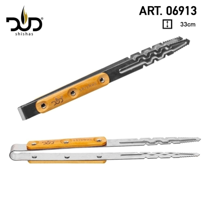 Die DUD Wasserpfeifenzange mit Holzgriff dient zur Einstellung der Holzkohle bei der Verwendung Ihrer Wasserpfeifen. Die Größe dieser Zange ist 33 cm lang und hat einen Holzgriff. Praktische Anwendung in Shisha-Lounges