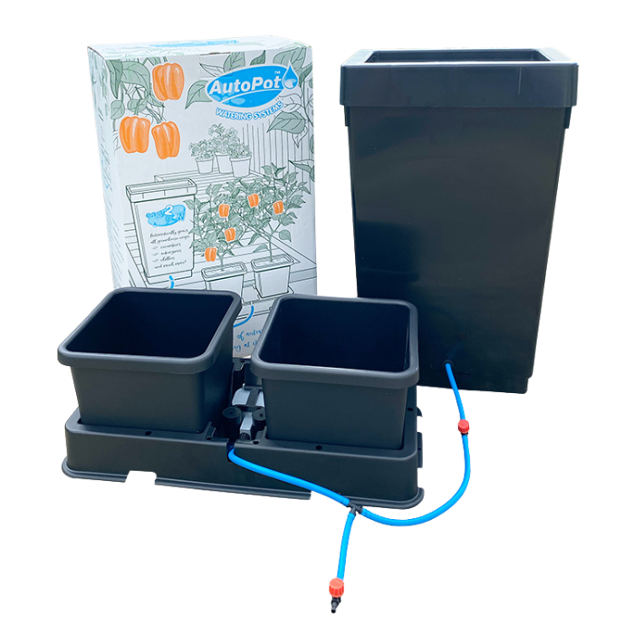 Das phänomenal platzsparende Zwei-Topf-Modul von easy2grow hilft den Gärtnern schon seit Jahren, das absolute Maximum aus ihren verfügbaren Flächen herauszuholen. Wie alle AutoPot Bewässerungssysteme kann easy2grow praktisch überall aufgestellt werden, da es weder Strom noch fließendes Wasser benötigt. Es lässt sich leicht erweitern, so dass viele Töpfe an ein einziges Reservoir angeschlossen werden können. Die Töpfe und Schalen können nach Belieben verschoben werden, und wenn die Pflanzen zu groß werden, können sie mit Leichtigkeit weiter auseinander gestellt werden.