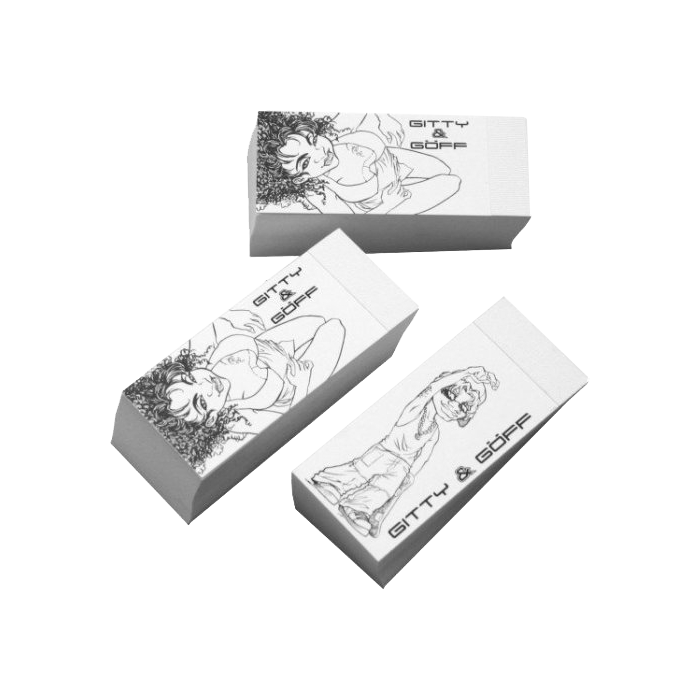 Gitty und Göff Filterblock. Dieser Filterblock hat 150 Blättchen. Die Filter sind unbedruckt. Masse: 5,5 x 2,5 cm