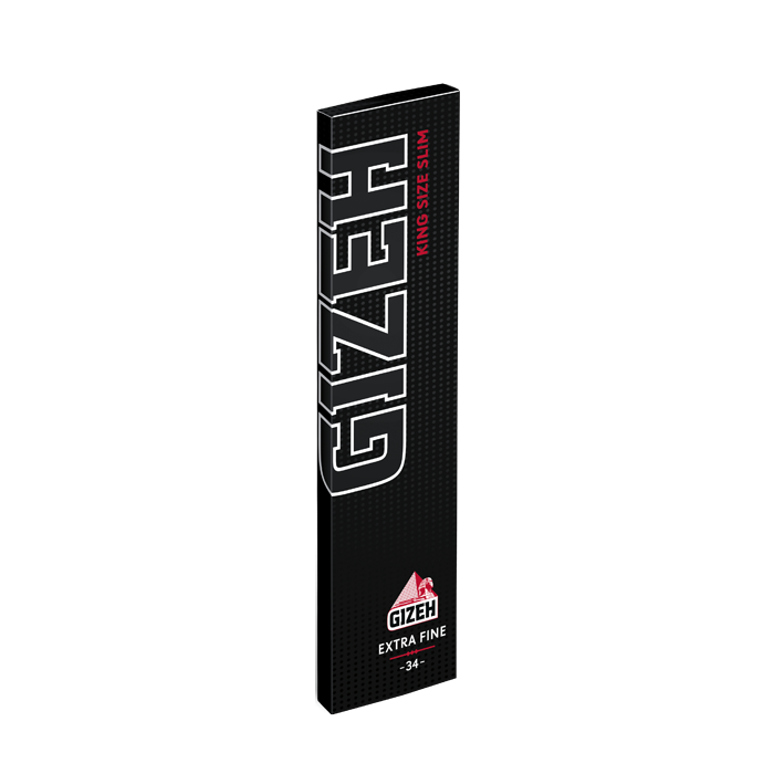 GIZEH BLACK King Size Slim sind extra feine, fast transparente Blättchen mit einem Flächengewicht von 14 g/m² und einer Gummierung aus natürlichem Gummiarabikum, dem Saft des Akazienbaums. Das extra feine Papier sorgt für puren und unverfälschten Genuss. Die Blättchen haben das King Size Slim Format, brennen sehr langsam ab und gehen aus, wenn nicht an der Selbstgedrehten gezogen wird. Je 33 Blättchen sind in einer Packung mit Magnetverschluss. Und natürlich sind die Packungen vollständig recyclebar.