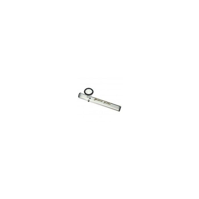 Handliche Glaspfeife mit rot-blauem Streifenmuster und grünem Glasdrachen. Kickloch seitlich am Kopf.