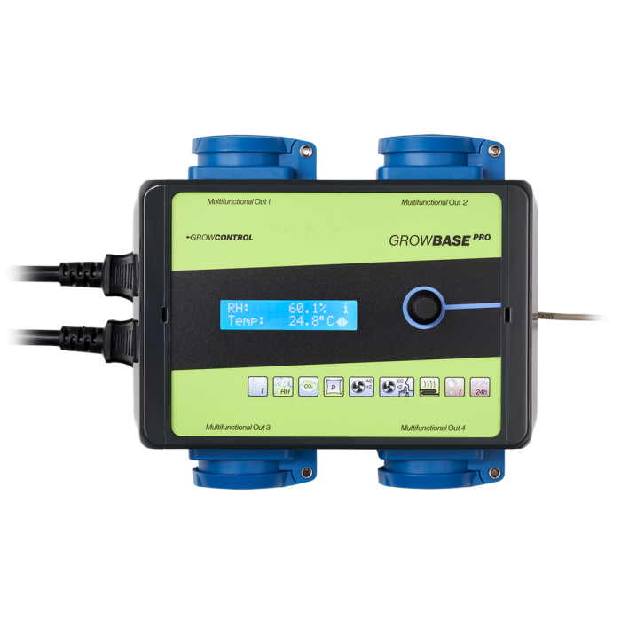 GROWBASE PRO ist die Schaltzentrale für den ambitionierten Indoor-Gärtner, da sie sämtliche Klimafaktoren stets genau kontrolliert. Es können verschiedene Geräte und Sensoren angeschlossen werden. Die vier Steckdosen ermöglichen den Betrieb unterschiedlicher Geräte, da sie auf eine Vielzahl von Funktionen eingestellt werden können. GROWBASE PRO ist zur Ansteuerung von EC- und AC- Ventilatoren gleichermaßen geeignet. Damit ist höchste Flexibilität garantiert.
