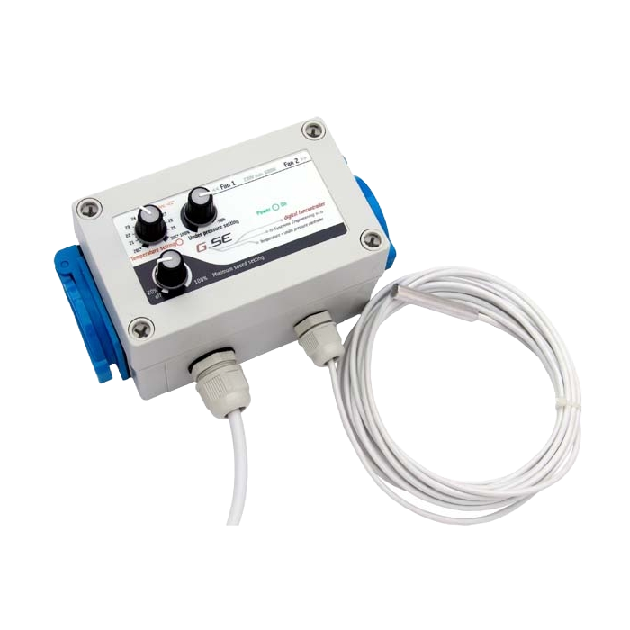 Der digitale Lüfterregler ist ein temperaturabhängiger Drehzahlregler für Räume mit Luftein- und -ausströmung. Der Lüfterregler hält die Raumtemperatur konstant und unter Druck, damit kein Geruch entweicht. Er kann einfach gesteuert werden, indem Sie die gewünschte Temperatur, die Mindestgeschwindigkeit und den Druck Ihres Raumes an vier Knöpfen einstellen. Dieser Lüfterregler kann auch als alleiniger Abluftregler an zwei Lüftern verwendet werden, wenn ein natürlicher Lufteintritt vorhanden ist.