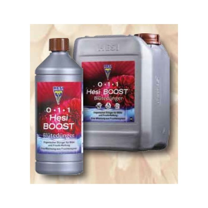 HESI BOOST ist ein kompletter organischer Dünger zur Intensivierung der Blüte. Eine Mischung aus Fruchtenzymen, Pflanzenzuckern und Fruchtextrakten. HESI BOOST ist ein sehr effektiver Blühstimulator. Es sorgt für eine schnelle Blütezeit und größere Blüten. HESI Boost ist für alle Medien geeignet. Diese speziell entwickelte Nährstoffkombination erhöht die Blattdichte, reduziert die Blatttrennungen und unterstützt die Energie der Pflanzen für einen kraftvollen, kompakten Wuchs. HESI Boost ist ein Blütenaktivator und gleichzeitig ein schonender Blattdünger für die Blütephase. Es stärkt die Blüte, erhöht den Zuckergehalt der Früchte und verbessert den Zustand der gesamten Pflanze.