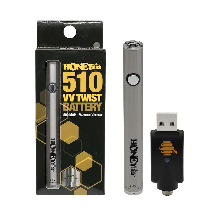 Dieser Stick-Akku fühlt sich wie ein hochwertiges Schreibgerät in Ihrer Hand oder Tasche an, mit einem soliden Körper und präziser Qualität und Widerstand am Knopf. Die HoneyStick 510 Gewinde Twist Vape Pen Batterie hat auch eine Vorheizfunktion, so dass Sie Ihre Karren grundiert und bereit bekommen können. Viele Vape-Batterien mit höherer Kapazität für 510er Gewinde haben eine Schürze oder einen Kragenanschluss, nicht so diese, sie ist schlank, so dass sie bündig mit Patronen für den Aero-Look verbunden ist. Dont get it Twisted! Dies ist die beste Einstiegsbatterie für vorgefüllte 510er Kartuschen. Erhältlich in einer mattschwarzen, mehrfarbigen, gebürsteten rostfreien, ozeanblauen und roten Ausführung.