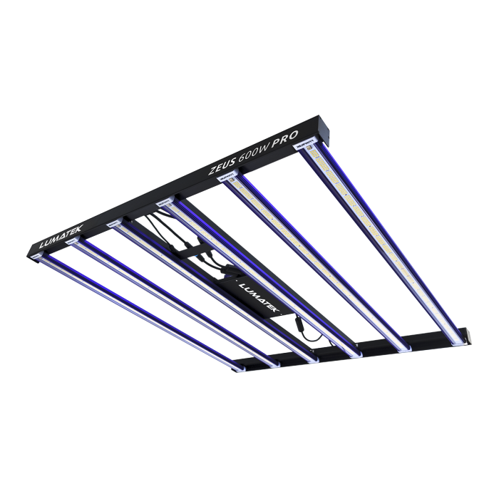 Für verschiedene Sorten, Vermehrungs- und vegetative Wachstumsperioden kann die Zeus ohne Effizienzverlust gedimmt werden. Die hocheffiziente und stromsparende LED-Konfiguration mit sechs LED-Balken reduziert die Temperatur der LEDs, wodurch die Leistung erhöht und die Lichtwartung verbessert wird.