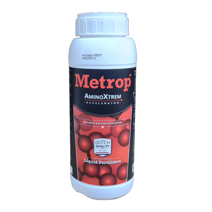 Metrop AminoXtrem Pflanzen und Blüte Stimulator ist ein qualitativ hochwertiger Pflanzenextrakt, der alle Aminosäuren und Vitamine enthält, die für den erhöhten Nährstoffbedarf in der Bluhphase und einen hohen Entrag auf jedem Medium Unterstützt sind.