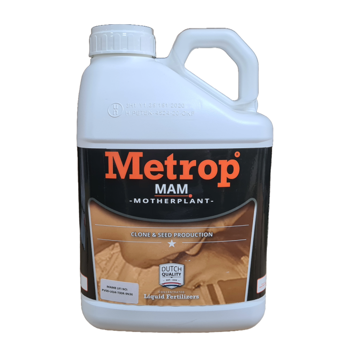 Metrop MAM Mutterpflanzenernährung ist eine moderne biomineralische Pflanzennahrung, die ausgewogen, immer biologisch abbaubar und resorbierbar ist. Metrop MAM Mutterpflanzenernährung ist ein Emulsionsdünger, der eine maximale Saatgut- und Stecklingsproduktion ermöglicht.