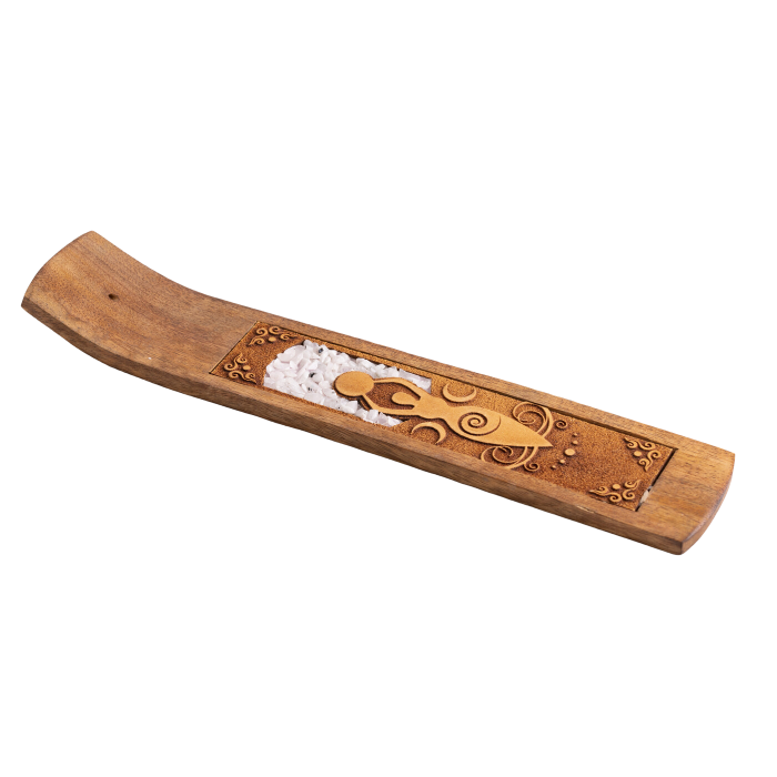 Mondgöttin mit Regenbogen-mondstein, Holzhalter für Räucherstäbchen