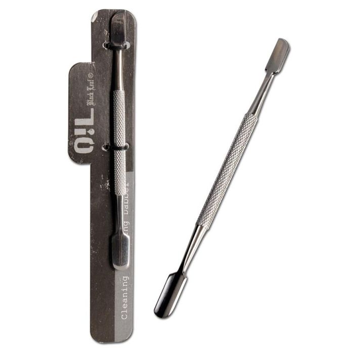 Mit diesem hochwertigen ´Oil Black Leaf´ Edelstahl-Werkzeug können ölige oder klebrige Substanzen professionell und zuverlässig bearbeitet werden. Das Werkzeug hat je Seite einen geriffelten Griff für eine hohe Griff-Stabilität.