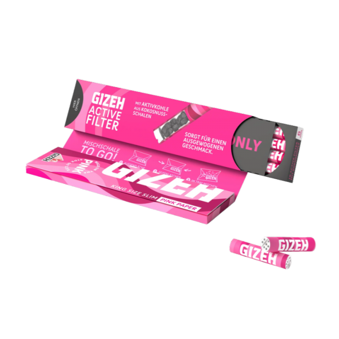 Mit 34 extrafeinen King Size Slim-Blättchen in angesagtem Pink und 16 hochwertigen Aktivkohlefiltern bist du bestens ausgestattet. Die Blättchen bestehen aus ultraleichtem, langsam abbrennendem Papier mit natürlicher Gummierung. Die mit Kokosnuss-Aktivkohle befüllten Filter liefern ein sanftes, angenehm gefiltertes Raucherlebnis – mehrfach verwendbar und made in Germany.