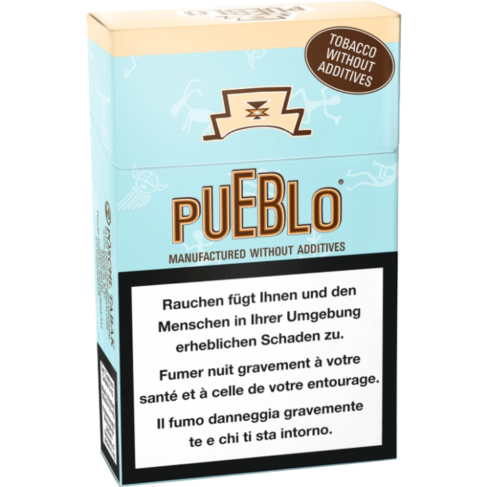 Hergestellt aus amerikanischen Virginia Tabaken - Tabak ohne Zusatzstoffe. Pueblo Box: 6 mg Teer - 0.6 mg Nikotin - 6 mg Kohlenmonoxid.
