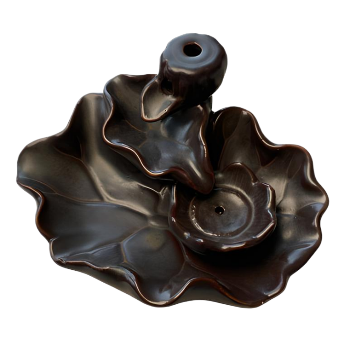 Ein Rückfluss-Weihrauchbrenner ist ein spezieller Weihrauchbrenner, der den Rauch nicht einfach nach oben entweichen lässt, sondern stattdessen durch ein Luftloch nach unten strömen lässt, was einen beruhigenden Effekt wie einen Wasserfall erzeugt. Es ist wichtig, diesen Brenner an einem windgeschützten Ort aufzustellen, damit der Rauch nicht durch den Wind gestört wird.
