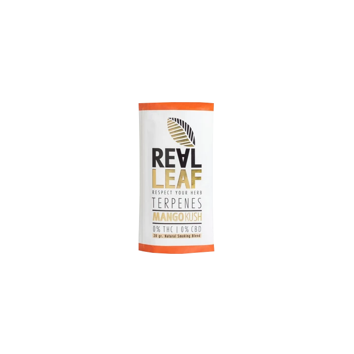 Real Leaf Tabakersatz Mango Kush mit Terpenen sind eine einzigartige, 100% nikotin- und tabakfreie Kräutermischungen, die mit Mango Kush Terpenen angereichert sind.