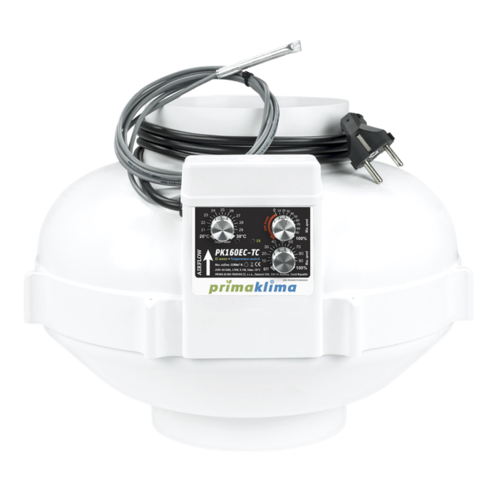 PrimaKlima hat mit dem Rohrlüfter PK160EC-TC ein neues Highlight auf den Markt gebracht, welches durch besonders hohe Qualität in der Verarbeitung, seiner Energieeffizienz und einer sehr ruhigen Laufleistung überzeugt. Der Rohrlüfter verfügt über eine Temperaturregelung sowie einer integrierten Drehzahlsteuerung, diese ist nicht nur praktisch sondern erübrigt auch den Kauf einer optionalen Drehzahlregelung.