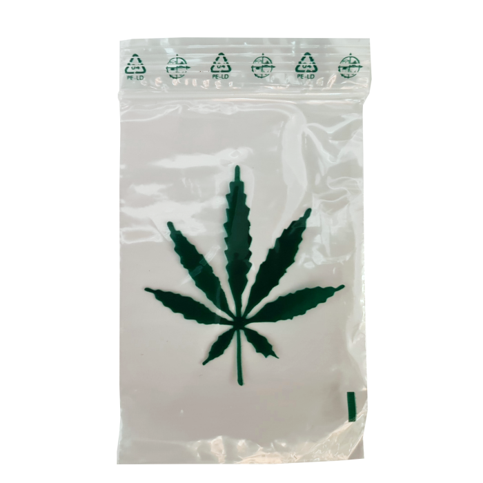 Schnellverschlußbeutel Hanfblatt 70x100mm, 0.05mm, 100Stk.