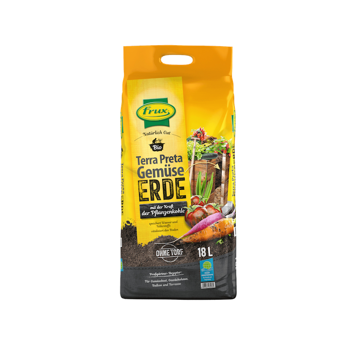 Das Geheimnis ist die enthaltene Pflanzenkohle, die wir in unsere Frux Terra Preta, eine torffreie Bio Gemüseerde, integriert haben. Aufgrund ihrer großen, porösen Oberfläche saugt sich Pflanzenkohle wie ein Schwamm mit Nährstoffen und Bodenlebewesen voll. Ihr Kohlenstoff ist für Mikroorganismen ein gefundenes Fressen. Sie bauen die organische Substanz ab und wandeln sie in humus- und nährstoffreichen Boden um.