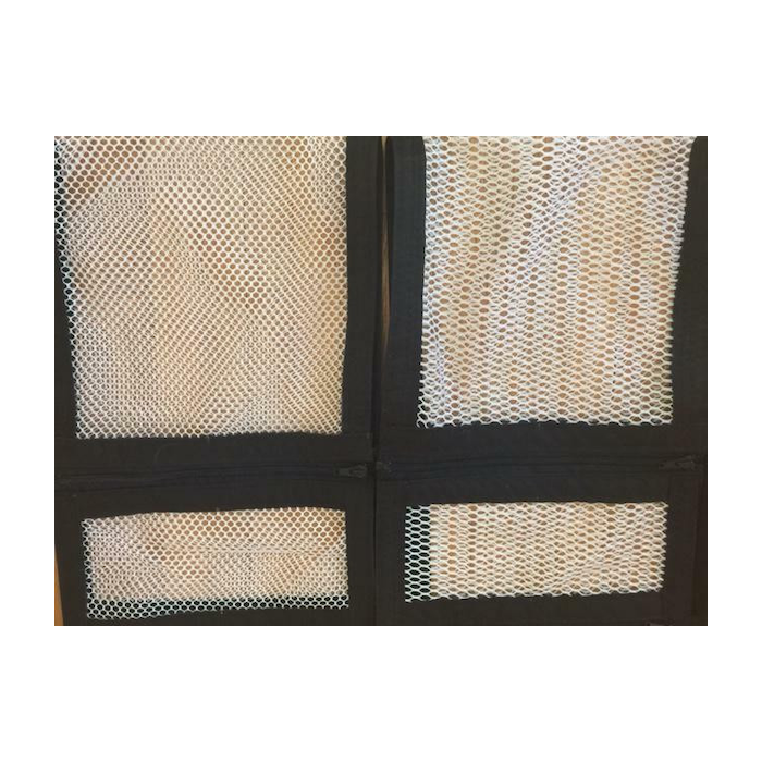 - Jedes MeshNet lässt sich ganz einfach in Ihren Cannabis-Trimmer einbauen: Verwenden Sie einfach die Klettverschlüsse, die an der Seite des Fasses kleben, und schließen Sie den Reißverschluss.