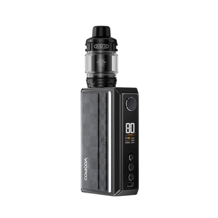 Der Drag 5 Mod wurde aus einer hochwertigen Zink-Legierung gefertigt und besitzt ein smartes Leder-Cover, das zugleich die Akkufachabdeckung bildet und ein schnelles Einsetzen und Entnehmen der beiden 18650er Zellen, die zum Betrieb benötigt werden, ermöglicht. In sieben stylischen Farbvarianten ist der modern designte Box-Mod ein echter Hingucker, der dank seiner ergonomischen Formgebung und dem griffigen Leder-Cover toll in der Hand liegt und eine Fülle an beeindruckenden Features bietet. Der mächtige Uforce-X Tankverdampfer ist sein “Perfect Match“ und verspricht in Verbindung mit den geschmacksstarken PnP-X Coils ein überragendes Dampferlebnis. Seine Handhabung ist angenehm leicht und mit 5.5 ml Tankvolumen, einer auslaufsicheren Top-AFC und einer praktischen Slider Top-Cap bietet er höchsten Bedienkomfort für maximalen Genuss.